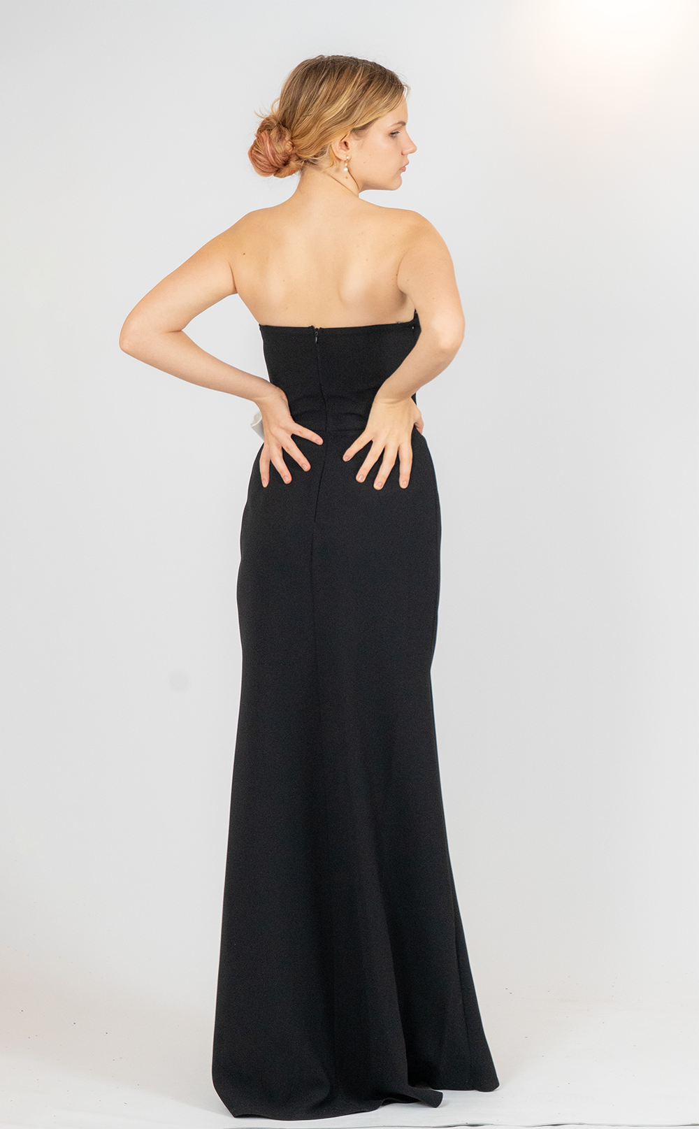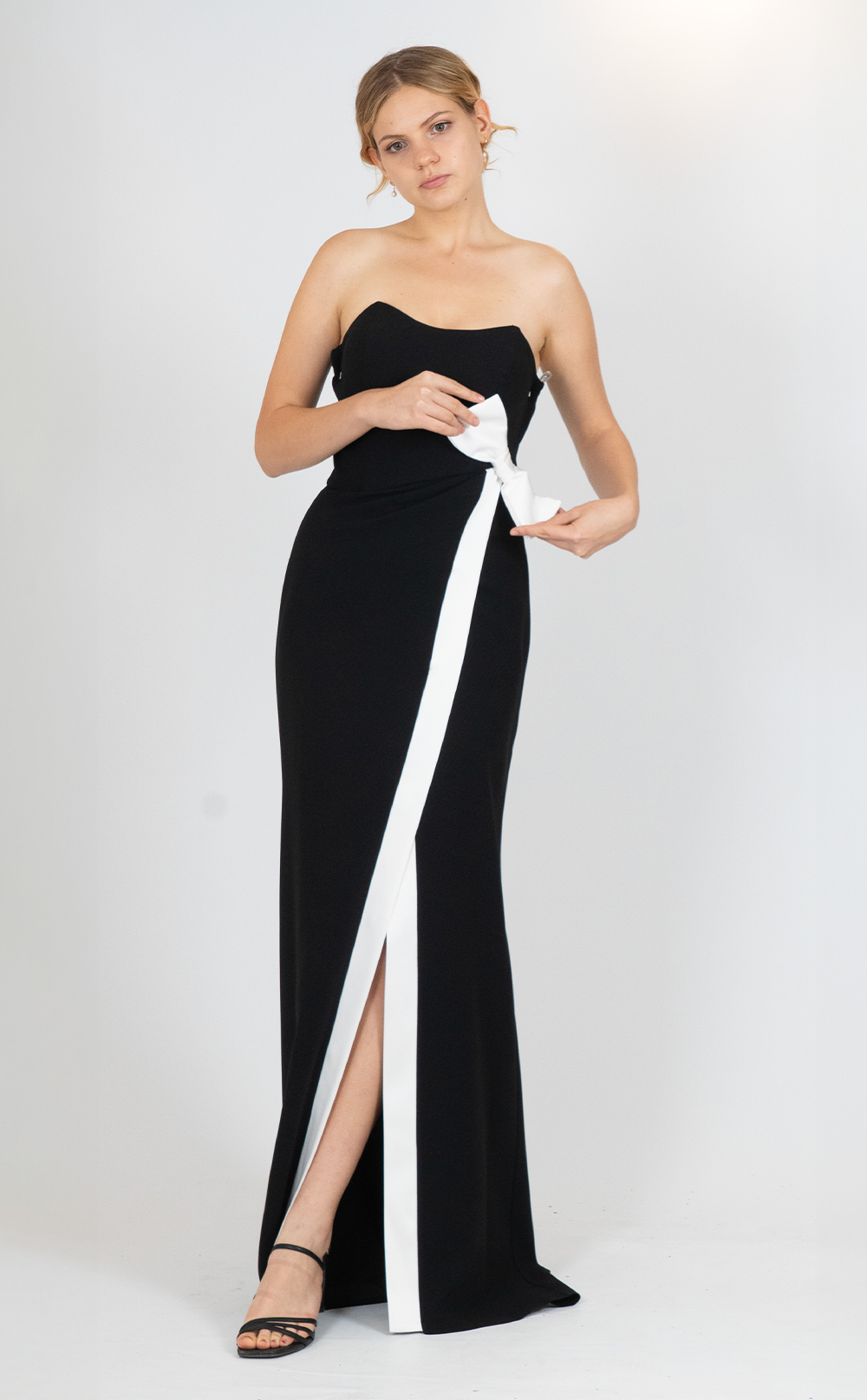 Bu abiye, zarif topuklu ayakkabılar ve sade bir clutch çanta ile mükemmel bir kombin yaratır. Kurdele detayı ön planda olduğu için takı tercihinizi minimal ve şık parçalardan yana kullanabilirsiniz. Saçlarınızı düşük topuz veya dalgalı yarım toplu modellerle tercih ederek modern ve asil bir duruş yakalayabilirsiniz.