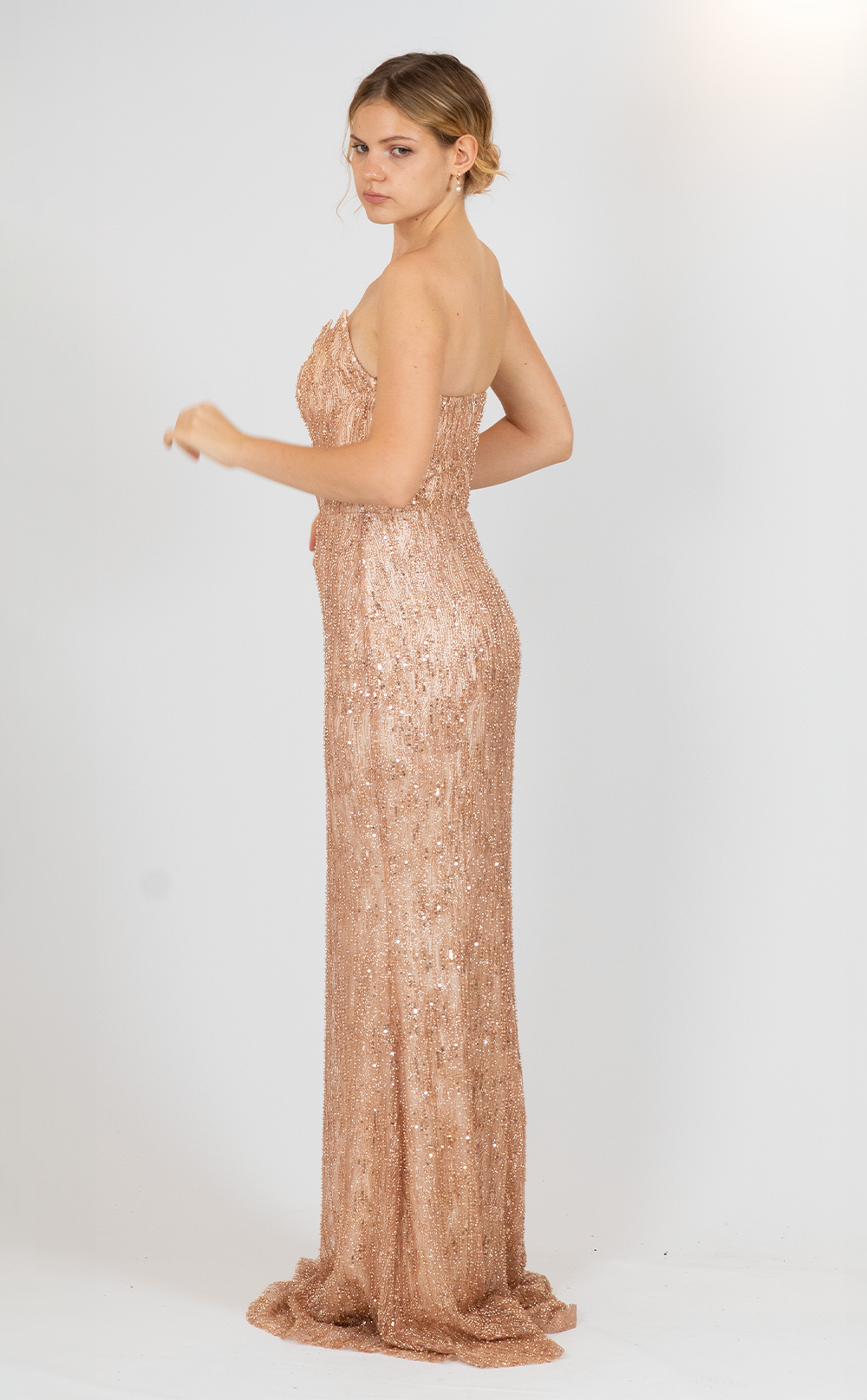 Boncuk İşli Payetli Straplez Abiye Elbise