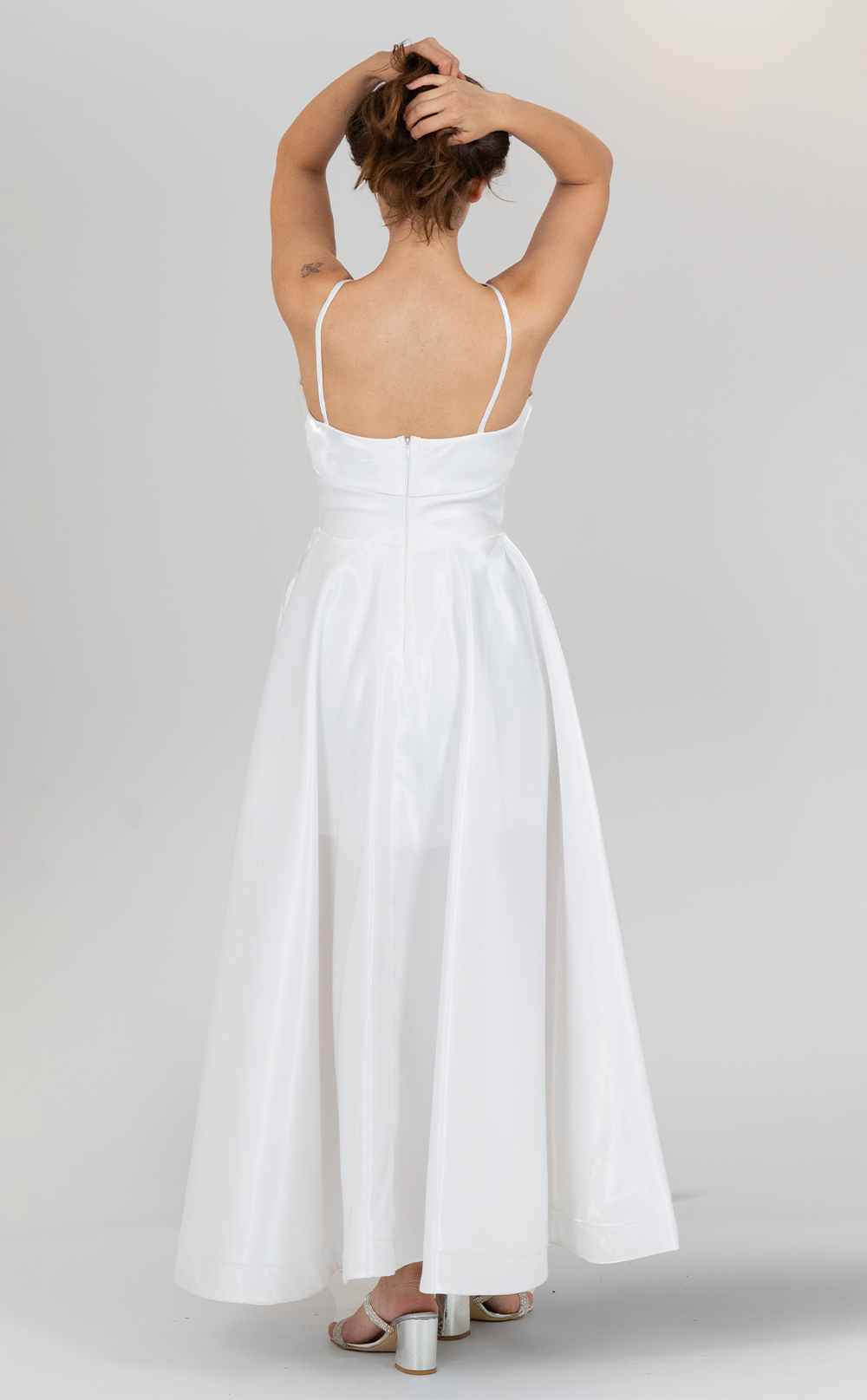 Bu abiye, nişan, söz, düğün, kokteyl, mezuniyet ve özel davetler için ideal bir tercihtir. Midi boy kesimi sayesinde hem modern hem de klasik konseptlerde rahatlıkla kullanılabilir. Beyaz rengin asaletini taşıyan bu model, zarif bir görünüm isteyenler için mükemmel bir seçimdir.