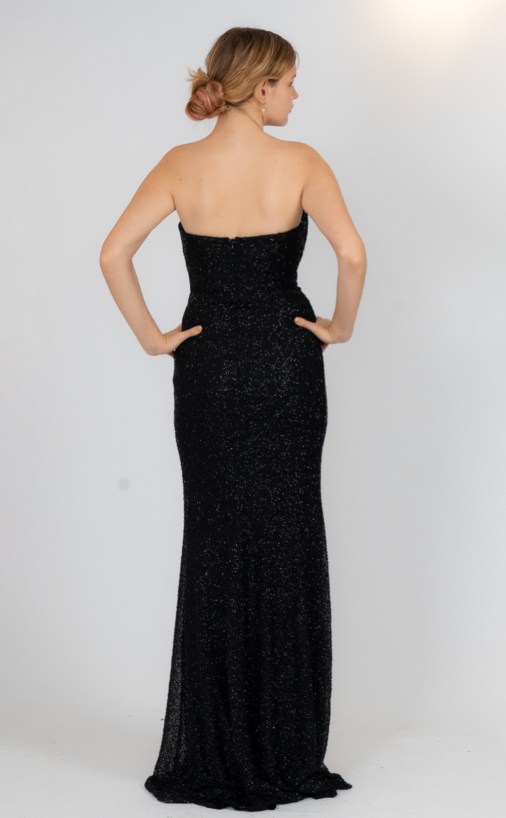Straplez Pul Payet Derin Yırtmaçlı Siyah Abiye